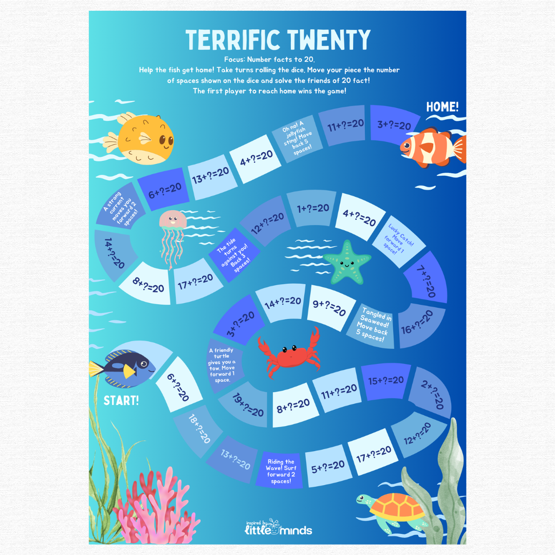 Using board games to practice doubles and addition facts to 10 and 20 makes learning fun and interactive! Perfect to play with a partner, all you need is a dice and your chosen game piece.